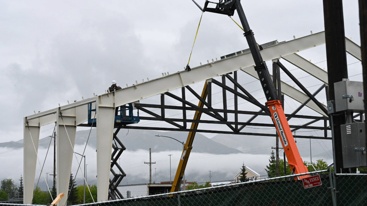 JOINT BASE: Construction on Muldoon Gate at Joint Base Elmendorf – Richardson adds weather protection and safety features for personnel. (Courtesy of the U.S. Air Force | Airman Eli Rose)