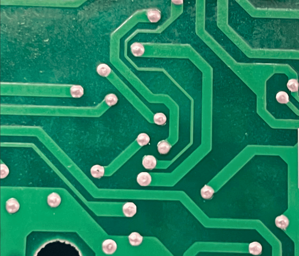A tiny plated hole called a via acts as a conductive tunnel, connecting traces from the top layer to the bottom layer. This lets signals and power jump between layers, keeping the routing efficient and the overall board size smaller. Without vias, a two-layer or multilayer board wouldn’t really be possible. Interestingly, the holes used for through-hole components also serve a second purpose. Since they’re plated with copper, they connect the front and back layers of the board just like a via does. In other words, many through-hole components are already doubling as a via. Take a look at some of the vias used on this board.