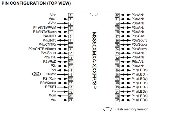 The data sheet shows that the power supply input for this microcontroller unit (MCU) is 2.7 VDC – 5.5 VDC. This particular one we are looking at on our Daikin board is fed with 5 VDC. The positive of the supply is routed to pin 1 (VCC – Voltage Common Collector) and the negative is routed to pin 21 (VSS – Voltage Source Supply). These markings can get confusing for us HVAC techs. The datasheet for the MCU used on the Carrier board we last looked at had the positive pin marked “VDD”. This is used interchangeably in most cases with “VCC” and is almost always the positive connection point.